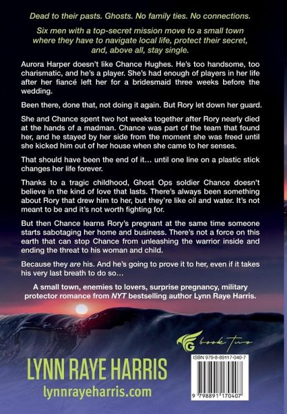 Dead to their pasts. Ghosts. No family ties. No connections. Six men with a top-secret mission move to a small town where they have to navigate local life, protect their secret, and, above all, stay single. Aurora Harper doesn't like Chance Hughes. He's too handsome, too charismatic, and he's a player. She's had enough of players in her life after her fiancé left her for a bridesmaid three weeks before the wedding. Been there, done that, not doing it again. But Rory let down her guard. She and Chance spent two hot weeks together after Rory nearly died at the hands of a madman. Chance was part of the team that found her, and he stayed by her side from the moment she was freed until she kicked him out of her house when she came to her senses. That should have been the end of it... until one line on a plastic stick changes her life forever. Thanks to a tragic childhood, Ghost Ops soldier Chance doesn't believe in the kind of love that lasts. There's always been something about Rory that drew him to her, but they're like oil and water. It's not meant to be and it's not worth fighting for. But then Chance learns Rory's pregnant at the same time someone starts sabotaging her home and business. There's not a force on this earth that can stop Chance from unleashing the warrior inside and ending the threat to his woman and child. Because they are his. And he's going to prove it to her, even if it takes his very last breath to do so... A small town, enemies to lovers, surprise pregnancy, military protector romance from NYT bestselling author Lynn Raye Harris