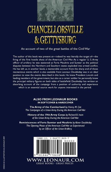 An account of two of the great battles of the Civil War The author of this book was present at-indeed he was literally the target of-the firing of the first hostile shots of the American Civil War. As a regular U. S. Army officer of artillery he was stationed at Forts Moultrie and Sumter as the political disputes between the Northern and Southern states exploded into armed conflict. He has left us, in another book, a memorable account from the sharp end of those momentous events which is also available from Leonaur. Doubleday was in an ideal position to view the events described in this book. He knew President Lincoln and leading members of the government, but also as a career soldier he personally knew the principal military figures on both sides of battlefield. Doubleday has written an absorbing account of the campaign from a position of authority and experience which is an essential source work for anyone interested in the period. Available in soft cover and cloth bound hard cover with dust jacket.