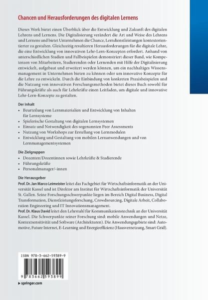 Dieses Werk bietet einen Überblick über die Entwicklung und Zukunft des digitalen Lehrens und Lernens. Die Digitalisierung verändert die Art und Weise des Lehrens und Lernens und bietet Unternehmen die Chance, Lerndienstleistungen kontextorientierter zu gestalten. Gleichzeitig resultieren Herausforderungen für die digitale Lehre, die eine Entwicklung von innovativen Lehr-Lern-Konzepten erfordert. Anhand von unterschiedlichen Studien und Fallbeispielen demonstriert dieser Band, wie Kompetenzen von Mitarbeitern, Studierenden oder Lernenden mit Hilfe der Digitalisierung entwickelt, aufgebaut und erweitert werden können, um ein nachhaltiges Wissensmanagement in Unternehmen bieten zu können oder um innovative Konzepte für die Lehre zu entwickeln. Durch die Einbindung von konkreten Praxisbeispielen und die Nutzung von innovativen Forschungsmethoden bietet dieses Buch sowohl für Führungskräfte als auch für Lehrkräfte einen Leitfaden, um digitale und innovative Lehr-Lern-Konzepte zugestalten.