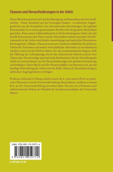 Dieses Buch konzentriert sich auf die Beteiligung und Interaktion der drei Großmächte - China, Russland und die Vereinigten Staaten - in arktischen Angelegenheiten aus der Perspektive der internationalen Beziehungen. Der globale Klimawandel ist zu einem gemeinsamen Problem für die gesamte Menschheit geworden. Eines seiner Schlüsselelemente ist die Erwärmung der Arktis, die sich auf alle Dimensionen der Natur und der Menschheit weltweit auswirkt. Der Klimawandel in der Arktis wird direkte Auswirkungen auf natürliche Ökosysteme, Küstengebiete, Wälder, Wasserressourcen, landwirtschaftliche Produktion, Viehzucht, Tourismus und andere wirtschaftliche Aktivitäten in verschiedenen Ländern rund um den Globus haben. Für die nordostasiatische Region stellt die Öffnung der Arktispassage durch das schmelzende Meereis jedoch eine Chance dar. Das derzeitige internationale Rechtssystem für die Verwaltung der Arktis ist unzureichend, um die Herausforderungen der globalen Erwärmung zu bewältigen. Dieses Buch wird für Wissenschaftler von Interesse sein, die die künftige Entwicklung der Arktis und die Rolle Chinas als Neuankömmling in arktischen Angelegenheiten verfolgen.