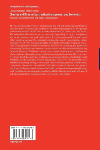 The book outlines the processes of calculating and critically reviewing construction costs and times for clients and contractors in different project phases. Any project or structural analysis should yield accurate information on times, costs, and prices. The related database is more or less uncertain depending on project complexity and the circumstances of work performance. It is thus recommended to use ranges of key input parameters. This approach consistently considers uncertainties within a holistic project view, thus enhancing the plausibility and validity of specific values. Only the integration of probabilistic methods will allow for calculating and graphically representing the chance/risk ratio as a crucial project variable ultimately influencing the entire business.