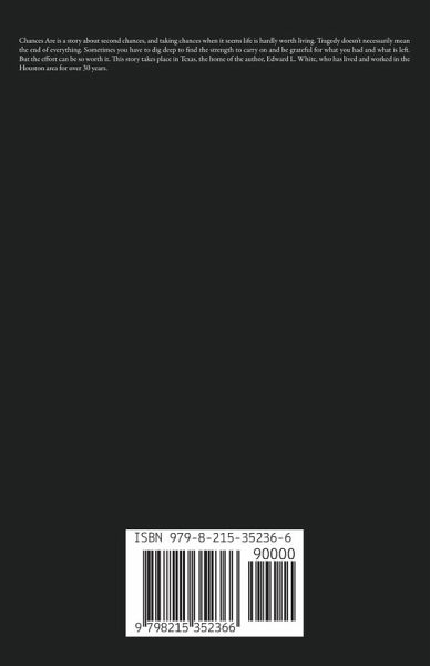 Chances Are is a story about second chances, and taking chances when it seems life is hardly worth living. Tragedy doesn't necessarily mean the end of everything. Sometimes you have to dig deep to find the strength to carry on and be grateful for what you had and what is left. But the effort can be so worth it. This story takes place in Texas, the home of the author, Edward L. White, who has lived and worked in the Houston area for over 30 years.
