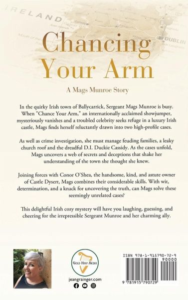 In the quirky Irish town of Ballycarrick, Sergeant Mags Munroe is busy. When Chance Your Arm, an internationally acclaimed showjumper, mysteriously vanishes and a troubled celebrity seeks refuge in a luxury Irish castle, Mags finds herself reluctantly drawn into two high-profile cases. As well as crime investigation, she must manage feuding families, a leaky church roof and the dreadful D.I. Duckie Cassidy. As the cases unfold, Mags uncovers a web of secrets and deceptions that shake her understanding of the town she thought she knew. Joining forces with Conor O'Shea, the handsome, kind and astute owner of Castle Dysert, Mags combines their considerable skills. With wit, determination, and a knack for uncovering the truth, can Mags solve these seemingly unrelated cases? This delightful Irish cozy mystery will have you laughing, guessing, and cheering for the irrepressible Sergeant Munroe and her charming ally.