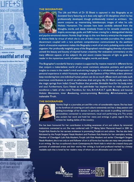 Life and Work of Architect-Professor Dr SS Bhatti is a marvellous Biography as an Excerpted Story featuring only eight of 55 disciplines which he has developed. His oeuvre conjures up mesmerizing kaleidoscopic images of what he calls Holistic Humanism. This beautiful literary creation is a make-believe world of art, social comment, educative pointers, and spiritual insights to create in the reader's mind soul-stirring longings for a wholesome self-expression of personal experience in which Humanity emerges as the Essence of Man. While ardent admirers keep wondering how one can make an enormous contribution to enrich an-otherwise drab life, Dr Bhatti coolly avers that the magic springs from India's Great Tradition that provides illimitable food for his body, mind, and soul. Furthermore, Guru Nanak as his path-finder has inspired him to make pursuit of excellence a habit of the mind. Therefore, for him, B-H-A-R-A-T spells Beauty and bounty, Holistic Humanism, inner Awakening, uncompromising Rationality, All-inclusiveness, and inalienable Truth.
