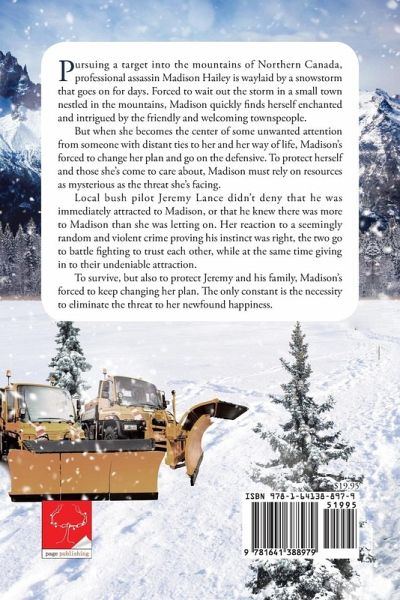 Pursuing a target into the mountains of Northern Canada, professional assassin Madison Hailey is waylaid by a snowstorm that goes on for days. Forced to wait out the storm in a small town nestled in the mountains, Madison quickly finds herself enchanted and intrigued by the friendly and welcoming townspeople. But when she becomes the center of some unwanted attention from someone with distant ties to her and her way of life, Madison’s forced to change her plan and go on the defensive. To protect herself and those she’s come to care about, Madison must rely on resources as mysterious as the threat she’s facing. Local bush pilot Jeremy Lance didn’t deny that he was immediately attracted to Madison, or that he knew there was more to Madison than she was letting on. Her reaction to a seemingly random and violent crime proving his instinct was right, the two go to battle fighting to trust each other, while at the same time giving in to their undeniable attraction. To survive, but also to protect Jeremy and his family, Madison’s forced to keep changing her plan. The only constant is the necessity to eliminate the threat to her newfound happiness.