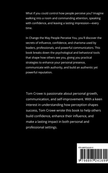 What if you could control how others perceive you? Imagine walking into any room with confidence, speaking with influence, and leaving a lasting impression. Change the Way People Perceive You is your guide to unlocking the secrets of confidence, charisma, and influence. Whether you're navigating the corporate world, building relationships, or simply looking to enhance your presence, this book provides actionable strategies to help you reshape the way people see you. Inside, you'll discover: ✔ How to make powerful first impressions that last ✔ The psychology behind confidence and body language ✔ Techniques to communicate with clarity and authority ✔ Ways to enhance charisma and build trust effortlessly ✔ Practical exercises to help you apply these skills instantly Perception shapes reality, and by mastering how others see you, you take control of your personal and professional success. It's time to step into the most confident version of yourself.