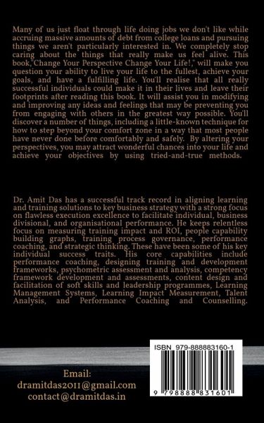 This book,"Change Your Perspective Change Your Life!," will make you question your ability to live your life to the fullest, achieve your goals, and have a fulfilling life. Many of us just float through life doing jobs we don't like while accruing massive amounts of debt from college loans and pursuing things we aren't particularly interested in. We completely stop caring about the things that really make us feel alive. It will assist you in modifying and improving any ideas and feelings that may be preventing you from engaging with others in the greatest way possible. You'll discover a number of things, including a little-known technique for how to step beyond your comfort zone in a way that most people have never done before—comfortably and safely. By altering your thoughts, you may attract wonderful chances into your life and achieve your objectives by using tried-and-true methods.The goal of this book is to encourage each reader to create their own legacy.