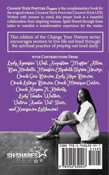Change Your Posture PRAYERS is THE accompanying book of prayer for the original release, Change Your Posture! Change Your LIFE! It is a beautiful collaborative effort of inspiring women. This book was written with women in mind. The writers allowed the Holy Spirit to flow through them to create an amazing and transformative experience for the reader. Readers learn to live life out loud with this edition of the Change Your Posture series. Sometimes, when going before God's throne, you are at a loss for words. With this book release, you can dive in and Change Your Posture with 366 days of prayers. Let your head be raised and your spirit blessed by the words of God-led women.