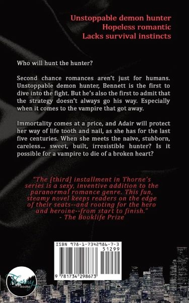 Who will hunt the hunter? Second chance romances aren't just for humans. Unstoppable demon hunter, Bennett is the first to dive into the fight. But he's also the first to admit that the strategy doesn't always go his way. Especially when it comes to the vampire that got away. Immortality comes at a price, and Adair will protect her way of life tooth and nail, as she has for the last five centuries. When she meets the naïve, stubborn, careless... sweet, built, irresistible hunter? Is it possible for a vampire to die of a broken heart?