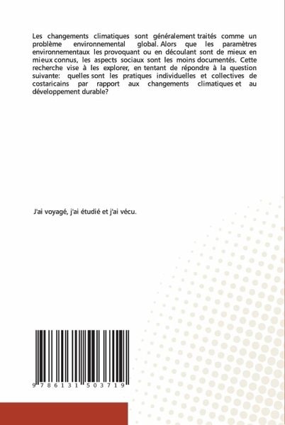 Les changements climatiques sont généralement traités comme un problème environnemental global. Alors que les paramètres environnementaux les provoquant ou en découlant sont de mieux en mieux connus, les aspects sociaux sont les moins documentés. Cette recherche vise à les explorer, en tentant de répondre à la question suivante: quelles sont les pratiques individuelles et collectives de costaricains par rapport aux changements climatiques et au développement durable?