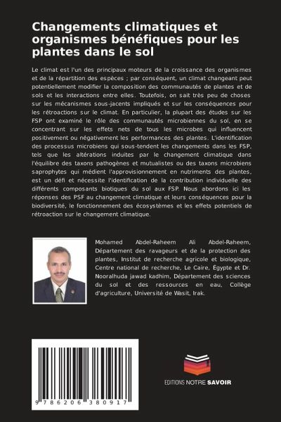 Le climat est l'un des principaux moteurs de la croissance des organismes et de la répartition des espèces ; par conséquent, un climat changeant peut potentiellement modifier la composition des communautés de plantes et de sols et les interactions entre elles. Toutefois, on sait très peu de choses sur les mécanismes sous-jacents impliqués et sur les conséquences pour les rétroactions sur le climat. En particulier, la plupart des études sur les FSP ont examiné le rôle des communautés microbiennes du sol, en se concentrant sur les effets nets de tous les microbes qui influencent positivement ou négativement les performances des plantes. L'identification des processus microbiens qui sous-tendent les changements dans les FSP, tels que les altérations induites par le changement climatique dans l'équilibre des taxons pathogènes et mutualistes ou des taxons microbiens saprophytes qui médient l'approvisionnement en nutriments des plantes, est un défi et nécessite l'identification de la contribution individuelle des différents composants biotiques du sol aux FSP. Nous abordons ici les réponses des PSF au changement climatique et leurs conséquences pour la biodiversité, le fonctionnement des écosystèmes et les effets potentiels de rétroaction sur le changement climatique.