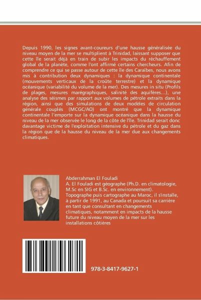 Depuis 1990, les signes avant-coureurs d'une hausse généralisée du niveau moyen de la mer se multiplient à Trinidad, laissant supposer que cette île serait déjà en train de subir les impacts du réchauffement global de la planète, comme l'ont affirmé certains chercheurs. Afin de comprendre ce qui se passe autour de cette île des Caraïbes, nous avons mis à contribution deux dynamiques : la dynamique continentale (mouvements verticaux de la croûte terrestre) et la dynamique océanique (variabilité du volume de la mer). Des mesures in situ (Profils de plages, mesures marégraphiques, salinité des aquifères...), une analyse des séismes par rapport aux volumes de pétrole extraits dans la région, ainsi que des simulations de deux modèles de circulation générale couplés (MCGC/AO) ont montré que la dynamique continentale l'emporte sur la dynamique océanique dans la hausse du niveau de la mer observée le long de la côte de l'île. Trinidad serait donc davantage victime de l'exploitation intensive du pétrole et du gaz dans la région que de la hausse du niveau de la mer due aux changements climatiques.