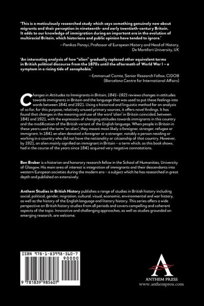 This book reviews changes in attitudes to immigrants in Britain and the language used to put these feelings into words between 1841 and 1921.