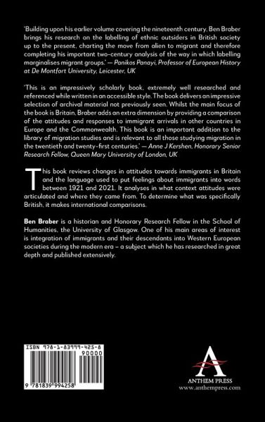 This book reviews changes in attitudes towards immigrants in Britain and the language used to put these feelings into words between 1921 and 2021. It analyses in what context attitudes were articulated and where they came from.
