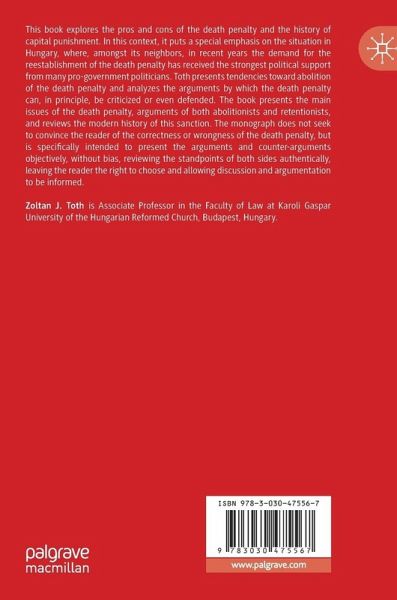 This book explores the pros and cons of the death penalty and the history of capital punishment. In this context, it puts a special emphasis on the situation in Hungary, where, amongst its neighbors, in recent years the demand for the reestablishment of the death penalty has received the strongest political support from many pro-government politicians. Toth presents tendencies toward abolition of the death penalty and analyzes the arguments by which the death penalty can, in principle, be criticized or even defended. The book presents the main issues of the death penalty, arguments of both abolitionists and retentionists, and reviews the modern history of this sanction. It does not seek to convince the reader of the correctness or wrongness of the death penalty, but it presents both sides of the argument and their standpoints, and leaves the reader to decide. It encourages informed debate and discussion.