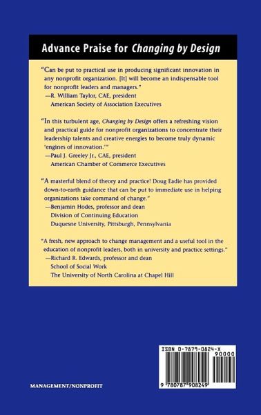 Change is an ever-present and powerful force in today?s fast-paced world. To keep an organization clearly focused on fulfilling its mission, nonprofit leaders must develop specific, strategic initiatives to meet the challenges of a constantly evolving environment. Changing by Design offers a proactive approach to both designing and implementing change initiatives within nonprofit organizations. By addressing three key areas?coordinated leadership on the part of the chief executive and the board, creative innovation in deciding what needs to change and how to change it, and effective implementation of new ideas and programs, this book presents a balanced, comprehensive model for successfully managing change in today?s nonprofit. Illustrated by real-life case studies, Changing by Design shows how to: * Design and manage a change plan?from initial analysis through implementation * Partner effectively with the board in leading change * Encourage and unleash creativity and innovation in developing change initiatives * Effectively involve staff in designing and implementing change * Protect change initiatives from becoming sidetracked by day-to-day pressures * Recognize and deal with barriers to change To successfully fulfill its mission and remain relevant to the world around it, an organization must not only be ready and able to adapt to change but must also develop a culture where change is used as a strategic, creative tool for growth. Changing by Design provides the innovative change management approach that will prepare any nonprofit organization to both maintain and expand its capacity to address the serious economic and social issues facing today?s turbulent world.