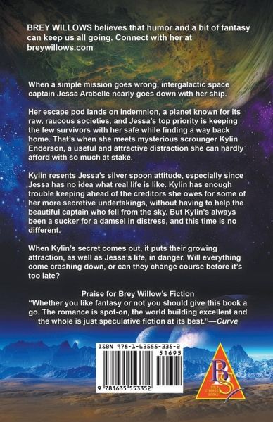 When a simple mission goes wrong, intergalactic space captain Jessa Arabelle nearly goes down with her ship. Her escape pod lands on Indemnion, a planet known for its raw, raucous societies, and Jessa's top priority is keeping the few survivors with her safe while finding a way back home. That's when she meets mysterious scrounger Kylin Enderson, a useful and attractive distraction she can hardly afford with so much at stake. Kylin resents Jessa's silver spoon attitude, especially since Jessa has no idea what real life is like. Kylin has enough trouble keeping ahead of the creditors she owes for some of her more secretive undertakings, without having to help the beautiful captain who fell from the sky. But Kylin's always been a sucker for a damsel in distress, and this time is no different. When Kylin's secret comes out, it puts their growing attraction, as well as Jessa's life, in danger. Will everything come crashing down, or can they change course before it's too late?