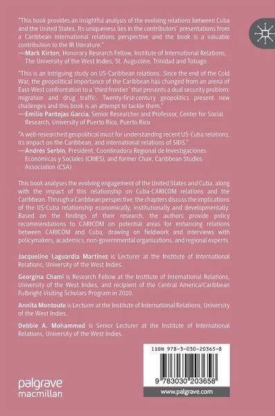 This book analyses the evolving engagement of the United States and Cuba, along with the impact of this relationship on Cuba-CARICOM relations and the Caribbean. Through a Caribbean perspective, the chapters discuss the implications of the U.S.-Cuba relationship economically, institutionally and developmentally. Based on the findings of their research, the authors provide policy recommendations to CARICOM on potential areas for enhancing relations between CARICOM and Cuba, drawing on fieldwork and interviews with policymakers, academics, non-governmental organizations, and regional experts.