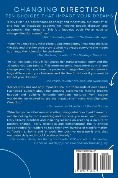 Too many people fail to take control of their lives, allowing themselves to fall victim and accept whatever happens. When you choose to dream-and defy the naysayers all around-you can change direction and accomplish nearly anything you set out to achieve. In "Changing Direction," Mary Miller lays out 10 choices anyone can make to impact his or her dreams. By concentrating on improving the future, you become a new, happier and more energized person. Miller describes how she first seized control of her life in 1987 as a then-30-year-old twice-divorced single mother of three. She explains how she later found the fortitude-and support-to buck conventional wisdom and change the direction of the family business she led with her third husband, Tony. To address their biggest obstacle-turnover-they began encouraging people to achieve their dreams and developed the Dream Manager program, a world-renowned initiative helping employees identify dreams, set goals and work to reach a better future. Miller explains that there are few things worse than having no control. You may feel lost. You may feel desperate. You may feel despair, but it does not have to be this way. "Changing Direction" weaves Miller's amazing personal story of triumph and transformation with 10 practical choices you can make today in order to move from victim to victor. To get started, all you have to do is dream.