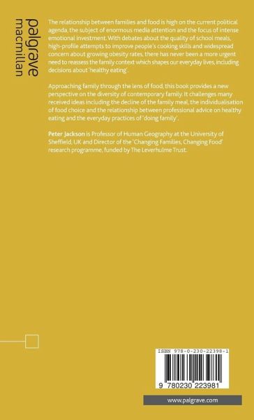 Approaching family through the lens of food, this book provides a new perspective on the diversity of contemporary family life, challenging received ideas about the decline of the family meal, the individualization of food choice and the relationship between professional advice on healthy eating and the everyday practices of 'doing family'.