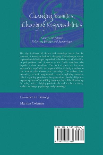 This book explores the topic of family obligations following changes in family structure caused by divorce and remarriage. Family obligations are commonly defined as the rights and duties that accompany family roles. They have been described as the "glue" that connects generations, as well as the "oughts" and "shoulds" that surround individual family relationships. This book is primarily concerned with normative beliefs about what family members should do for each other. It differs from previous accounts of family obligation norms because it specifically focuses on family responsibilities after divorce and remarriage, two events that affect an increasing number of families today. The authors draw extensively upon the findings of 13 studies of normative beliefs regarding post-divorce intergenerational family obligations. This book fills a gap in the present literature concerning family obligation. It addresses the weaknesses of prior research by focusing on family transitions and by presenting data from studies that employ contextual methods. The content will provide guidance to policymakers and helping professionals who work with families, and the unique focus and procedures of the studies are likely to set the standard for future assessments of normative beliefs about family obligations.