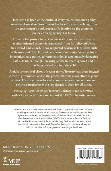 Examines how Treasury has evolved: in its economic thinking and with its influence on policy. Treasury has been at the centre of every major economic policy issue the Australian Government has faced, its role evolving from the government's bookkeeper at Federation in 1901 to the economic policy advising agency it is today. Throughout its history Treasury has been a robust and stable institution with a consistent market-oriented economic framework - but its policy influence has waxed and waned. It has supported reformist Treasurers such as Keating and Costello, and been a voice of caution when political imperatives have pushed governments down economically damaging paths. At times, though, Treasury advice has been ignored and it has been pushed out into the cold. Amidst the political chaos of recent times, Treasury has been dragged closer to government and become a less effective policy adviser. The consequent lack of a consistent government economic reform narrative over the last decade is plain for all to see. Changing Fortunes tracks Treasury's history since Federation, with a focus on the modern era since its 1976 split with Finance.