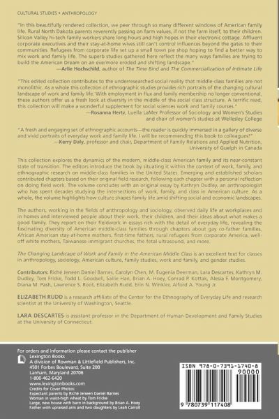In this beautifully rendered collection, we peer through so many different windows of American family life. Rural North Dakota parents reverently passing on farm values, if not the farm itself, to their children. Silicon Valley hi-tech family workers share long hours and high hopes in their electronic cottage. Affluent corporate executives and their stay-at-home wives still can't control influences beyond the gates to their communities. Refugees from corporate life set up a small town pie shop hoping to find a better way to mix work and family life. The superb studies gathered here reflect the many ways families are trying to build the American Dream on an ever more eroded and shifting landscape. -- Arlie Hochschild, author of The Time Bind, and The Commercialization of Intimate Life. A fresh and engaging set of ethnographic accounts - the reader is quickly immersed in a gallery of diverse and vivid portraits of everyday work and family life. I will be recommending this book to colleagues! -- Kerry Daly, professor and chair, department of family relations and applied nutrition, University of Guelph in Canada The sheer variety of people and circumstances found in the 13 substantive chapters is striking. -- Robert Drago, Professor LSER & WS, Penn State Useful for students...Recommended. CHOICE, February 2009 This edited collection contributes to the under-researched social reality that middle class families are not monolithic. As a whole this collection of ethnographic studies provides rich portraits of the changing cultural landscape of work and family life.With employment in flux and family membership no longer conventional these authors offer us a fresh look at diversity in the middle of the social class structure. A terrific read this collection will make a wonderful supplement for social sciences work/family courses... -- Rosanna Hertz, Luella LaMer Professor of Sociology and Women's Studies and Chair of Women's Studies at Wellesley College This edited collection contributes to the under-researched social reality that middle class families are not monolithic. As a whole this collection of ethnographic studies provides rich portraits of the changing cultural landscape of work and family life. With employment in flux and family membership no longer conventional these authors offer us a fresh look at diversity in the middle of the social class structure. A terrific read this collection will make a wonderful supplement for social sciences work/family courses. -- Rosanna Hertz, Luella LaMer Professor of Sociology and Women's Studies and Chair of Women's Studies at Wellesley College The case studies examined here make this book an informative resource; it could be particularly useful as a course text since many chapters include brief but good scholarly and historical backgrounds, such as histories of working mothers in African American communities and shifting attitudes toward children and parenting in the United States. Anthropology Of Work Review