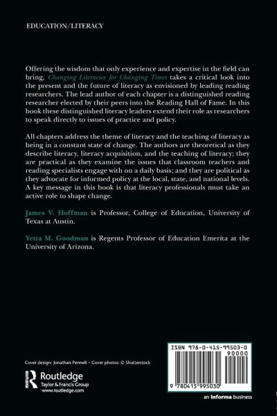 Preface, Yetta Goodman and James V. Hoffman Part I: Expanding Views of Literacy 1. The Communicative, Visual and Performative Arts: Core Components of Literacy Education, Diane Lapp, James Flood, Shirley Brice Heath and Judith Langer 2. From Gray to Google: Learning within a Profession, Nancy L. Roser and Sam Weintraub 3. Multimodality: In Perspective, Jerome Harste 4. Surveying the Hopescape, Rudine Sims Bishop Part II: Literacy Development 5. The Transformation of Children's Knowledge of Language Units During Beginning and Initial Literacy, Emilia Ferreiro 6. Early Literacy: Then and Now, William H. Teale, Jessica Hoffman, Kathleen Paciga, Jennifer Garrette Lisy, Samantha Richardson and Charlise Berkel 7. Reaching/Teaching Adolescents: Literacies with a History, Donna E. Alvermann 8. The Lamplighters: Pioneers of Adult Literacy Education in the United States, Thomas Sticht Part III: Foundational Issues in the Teaching of Reading 9. Revisiting The Concept of "Natural Learning", Brian Cambourne 10. Beyond Word Recognition: How Retrospective and Future Perspectives on Miscue Analysis Can Inform Our Teaching, Kenneth Goodman, Yetta Goodman and Eric Paulson 11. Spelling and Its Role in Literacy Education: An Historical Perspective, Richard E. Hodges 12. Readability: Insights, Sidelights, and Hindsights, Ed Fry Part IV: Teaching, Teacher Education and Professional Development 13. Literacy Education at a Crossroad: Can We Counter the Trend to Marginalize Quality Teacher Education? Gerald G. Duffy, Sandra M. Webb and Stephanie Davis 14. Whole School Instructional Improvement through the Standards-Based Change Process: A Developmental Model, Taffy E. Raphael, Kathryn H. Au and Susan R. Goldman Part V: Policy and Practice in Literacy Education 15. Language Policy and Literacy Instruction: The View From South Africa to South Texas, James V. Hoffman, Misty Sailors, Leketi Makalela and Bertus Matthee 16. Fifty Years of Federal Government Involvement in Reading Education, Patrick Shannon, Jacqueline Edmondson, Leticia Ortega, Susan Pitcher, and Christopher Robbins 17. Literacy Policies that are Needed: Thinking Beyond "No Child Left Behind", Richard L. Allington 18. Literacy Education 2.0: Looking through the Rear Vision Mirror as We Move Ahead, Robert J. Tierney Index