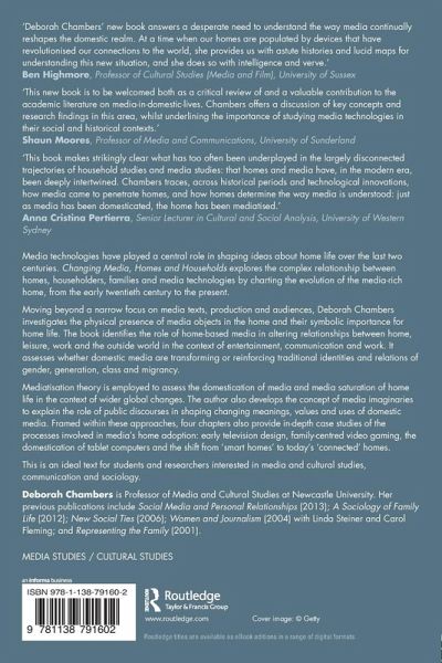 Media technologies have played a central role in shaping ideas about home life over the last two centuries. Changing Media, Homes and Households explores the complex relationship between home, householders, families and media technologies by charting the evolution of the media-rich home, from the early twentieth century to the present. Moving beyond a narrow focus on media texts, production and audiences, Deborah Chambers investigates the physical presence of media objects in the home and their symbolic importance for home life. The book identifies the role of home-based media in altering relationships between home, leisure, work and the outside world in the context of entertainment, communication and work. It assesses whether domestic media are transforming or reinforcing traditional identities and relations of gender, generation, class and migrancy. Mediatisation theory is employed to assess the domestication of media and media saturation of home life in the context of wider global changes. The author also develops the concept of media imaginaries to explain the role of public discourses in shaping changing meanings, values and uses of domestic media. Framed within these approaches, four chapters also provide in-depth case studies of the processes involved in media's home adoption: early television design, family-centred video gaming, the domestication of tablet computers, and the shift from "smart homes" to today's "connected" homes. This is an ideal text for students and researchers interested in media and cultural studies, communication, and sociology.