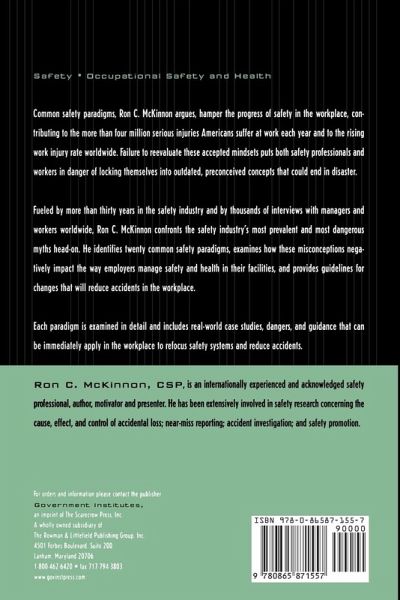 Fueled by more than 30 years in the safety industry and by thousands of interviews with managers and workers worldwide, McKinnon confronts the safety industry's most prevalent and most dangerous myths head-on. He identifies 20 common safety paradigms, examines how these misconceptions negatively impact the way employers manage safety and health in their facilities, and provides guidelines for changes that will reduce accidents in the workplace.