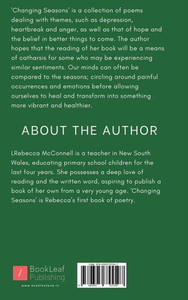 Changing Seasons' is a collection of poems dealing with themes, such as depression, heartbreak and anger, as well as that of hope and the belief in better things to come. The author hopes that the reading of her book will be a means of catharsis for some who may be experiencing similar sentiments. Our minds can often be compared to the seasons; circling around painful occurrences and emotions before allowing ourselves to heal and transform into something more vibrant and healthier.
