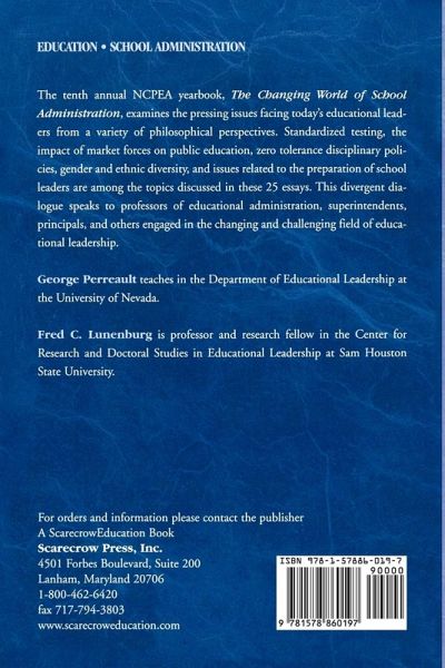 Now available in paper back.The tenth annual NCPEA yearbook examines the pressing issues facing today's educational leaders from a variety of philosophical perspectives. Standardized testing, the impact of market forces on public education, zero tolerance disciplinary polices, ethnic and gender diversity, and issues related to the preparation of school leaders are among the topics discussed in the 25 essays.