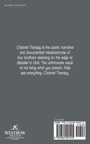 Channel Therapy is the poetic narrative and documented misadventures of four brothers teetering on the edge of disbelief in God. The unfortunate result of not living what you preach. Kids see everything. Channel Therapy.
