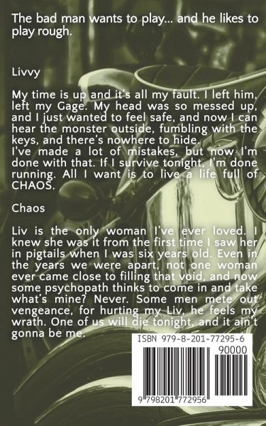 The bad man wants to play... and he likes to play rough. Livvy My time is up and it's all my fault. I left him, left my Gage. My head was so messed up, and I just wanted to feel safe, and now I can hear the monster outside, fumbling with the keys, and there's nowhere to hide. I've made a lot of mistakes, but now I'm done with that. If I survive tonight, I'm done running. All I want is to live a life full of CHAOS. Chaos Liv is the only woman I've ever loved. I knew she was it from the first time I saw her in pigtails when I was six years old. But growing up around a biker club, I knew the rules. She's my best friend, Blood's, little sister making her completely forbidden. What we had developed behind his back, behind closed doors. I let her go to help him. Even in the years we were apart, not one woman ever came close to filling that void. Then Houdini happened. He tried to take her from me-never. Blood will have to deal. Now some new psychopath thinks to come in and take what's mine? We've given up so much to be together, but Liv and I deserve this second chance. Some men mete out vengeance, for hurting my Liv, he feels my wrath. One of us will die tonight, and it ain't gonna be me. Chaos Calmed is a steamy, action-packed, forbidden, second chance romance full of suspense. Join Chaos and Liv for one wild ride in book three of the Brimstone Lords MC series.
