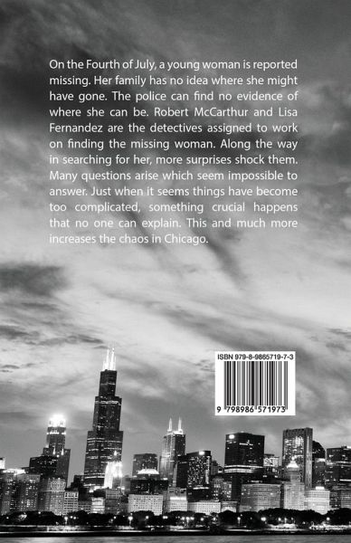 On the Fourth of July, a young woman is reported missing. Her family has no idea where she might have gone. The police can find no evidence of where she can be. Robert McCarthur and Lisa Fernandez are the detectives assigned to work on finding the missing woman. Along the way in searching for her, more surprises shock them. Many questions arise which seem impossible to answer. Just when it seems things have become too complicated, something crucial happens that no one can explain. This and much more increases the chaos in Chicago.
