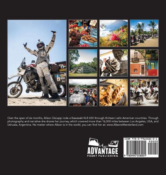 What happens when you take an interlude from "normal" life and chase a dream to where the road ends? This is one woman's story of a motorcycle adventure from Los Angeles, CA, USA to the southernmost city of Ushuaia, TDF, Argentina, told through photographs and brief narrative. Over the span of six months, she rode her KLR650 more than 16,000 miles around thirteen Latin countries in North, Central and South America.