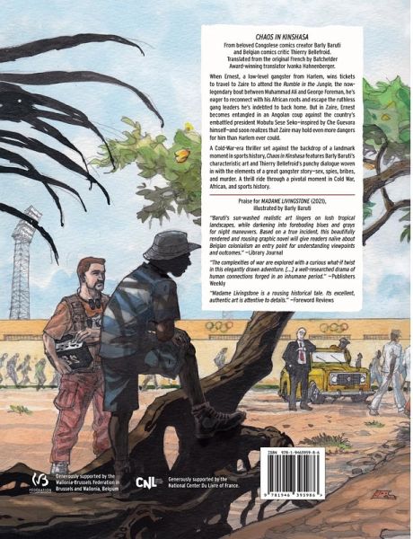 "From beloved Congolese comics creator Barly Baruti and Belgian comics critic Thierry Bellefroid, translated from the original French by Batchelder Award-winning translator Ivanka Hahnenberger A Harlem gangster's trip to Central Africa to attend the legendary 1974 Ali-Foreman "Rumble in the Jungle" boxing match becomes a one-way ticket to the seedy underground of Zaire-complete with espionage, murder, and a communist plot to overthrow Zaire's infamous President Mobuto. On October 30, 1974 in the Republic of Zaire, Muhammad Ali and George Foreman will fight the biggest boxing match in history-the epic Rumble in the Jungle, watched by over one billion people worldwide. But on the streets of Zaire, now the Republic of Congo, a deeper conflict is at play, as communist and capitalist forces move against each other in secret and corruption under Zaire's president Mobuto threatens to plunge the country-and the Cold War-into chaos. When Ernest, a low-level gangster from Harlem, wins tickets to travel to Zaire and attend the fight, he's eager to reconnect with his African roots and escape the ruthless gang leaders he's indebted to back home. But in Zaire, Ernest becomes entangled in an Angolan coup against Zaire's president Mobuto Sese Suko, inspired by Che Guevara himself -and soon realizes that Zaire may hold even more dangers for him than Harlem ever had. With punchy dialogue, Barly Baruti's characteristic art style, and all the best elements of a great gangster story-sex, spies, bribes, and murder-Chaos in Kinshasa is a grungy, graphic thrill ride through a pivotal moment in Cold War, African, and sports history"--