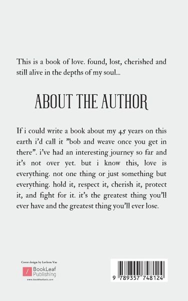 this is a book of love. found, lost, cherished and still alive in the depths of my soul...