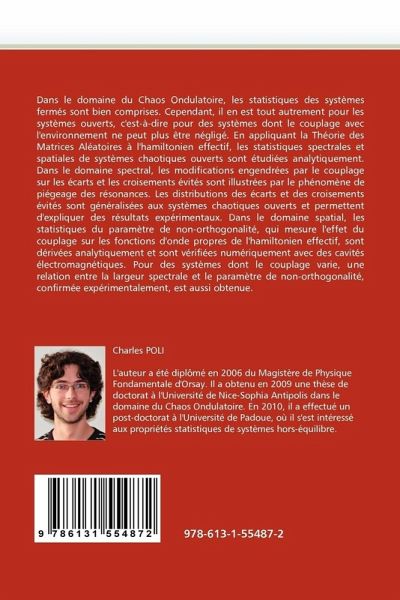 Dans le domaine du Chaos Ondulatoire, les statistiques des systèmes fermés sont bien comprises. Cependant, il en est tout autrement pour les systèmes ouverts, c'est-à-dire pour des systèmes dont le couplage avec l'environnement ne peut plus être négligé. En appliquant la Théorie des Matrices Aléatoires à l'hamiltonien effectif, les statistiques spectrales et spatiales de systèmes chaotiques ouverts sont étudiées analytiquement. Dans le domaine spectral, les modifications engendrées par le couplage sur les écarts et les croisements évités sont illustrées par le phénomène de piégeage des résonances. Les distributions des écarts et des croisements évités sont généralisées aux systèmes chaotiques ouverts et permettent d'expliquer des résultats expérimentaux. Dans le domaine spatial, les statistiques du paramètre de non-orthogonalité, qui mesure l'effet du couplage sur les fonctions d'onde propres de l'hamiltonien effectif, sont dérivées analytiquement et sont vérifiées numériquement avec des cavités électromagnétiques. Pour des systèmes dont le couplage varie, une relation entre la largeur spectrale et le paramètre de non-orthogonalité, confirmée expérimentalement, est aussi obtenue.
