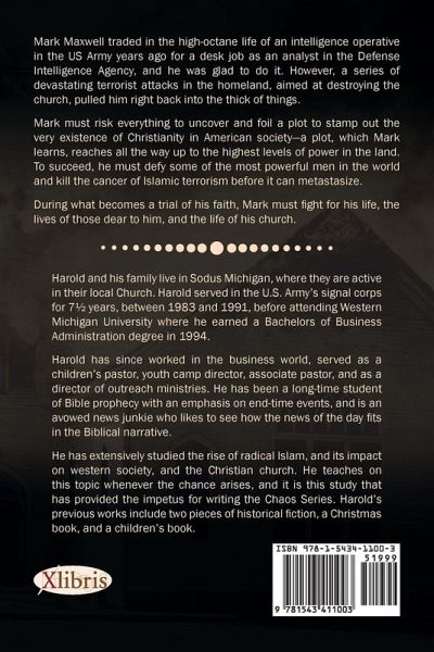 Mark Maxwell traded in the high-octane life of an intelligence operative in the US Army years ago for a desk job as an analyst in the Defense Intelligence Agency, and he was glad to do it. However, a series of devastating terrorist attacks in the homeland aimed at destroying the church pulled him right back into the thick of things. Mark must risk everything to uncover and foil a plot to stamp out the very existence of Christianity in American society—a plot, which Mark learns, that reaches all the way up to the highest levels of power in the land. To succeed, he must defy some of the most powerful men in the world and kill the cancer of Islamic terrorism before it can metastasize. During what becomes a trial of his faith, Mark must fight for his life, the lives of those dear to him, and the life of his church.