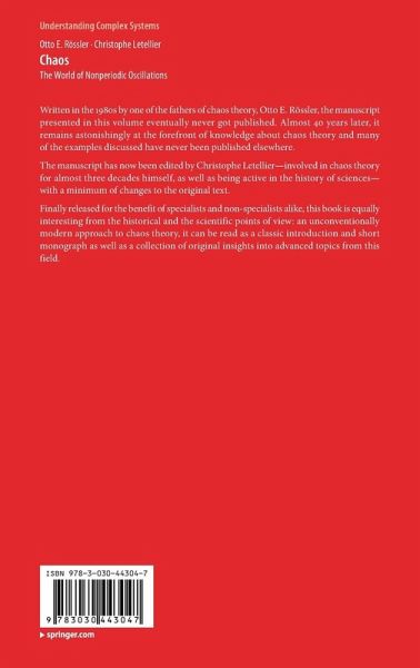 Written in the 1980s by one of the fathers of chaos theory, Otto E. Rössler, the manuscript presented in this volume eventually never got published. Almost 40 years later, it remains astonishingly at the forefront of knowledge about chaos theory and many of the examples discussed have never been published elsewhere. The manuscript has now been edited by Christophe Letellier - involved in chaos theory for almost three decades himself, as well as being active in the history of sciences - with a minimum of changes to the original text. Finally released for the benefit of specialists and…mehr