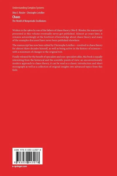 Written in the 1980s by one of the fathers of chaos theory, Otto E. Rössler, the manuscript presented in this volume eventually never got published. Almost 40 years later, it remains astonishingly at the forefront of knowledge about chaos theory and many of the examples discussed have never been published elsewhere. The manuscript has now been edited by Christophe Letellier - involved in chaos theory for almost three decades himself, as well as being active in the history of sciences - with a minimum of changes to the original text. Finally released for the benefit of specialists and…mehr