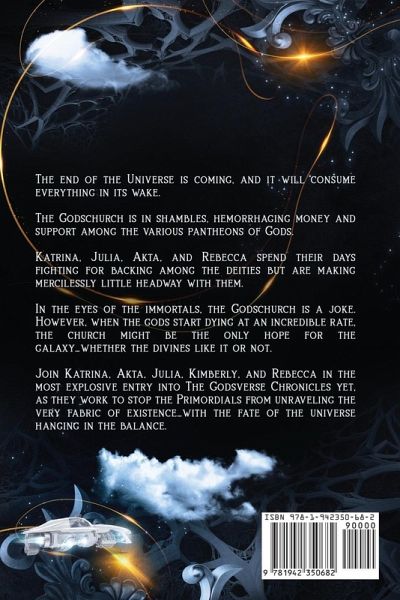 The end of the Universe is coming, and it will consume everything in its wake. The Godschurch is in shambles, hemorrhaging money and support among the various pantheons of Gods. Katrina, Julia, Akta, and Rebecca spend their days fighting for backing among the deities but are making mercilessly little headway with them. In the eyes of the immortals, the Godschurch is a joke. However, when the gods start dying at an incredible rate, the church might be the only hope for the galaxy...whether the divines like it or not. Join Katrina, Akta, Julia, Kimberly, and Rebecca in the most explosive entry into The Godsverse Chronicles yet, as they work to stop the Primordials from unraveling the very fabric of existence...with the fate of the universe hanging in the balance.