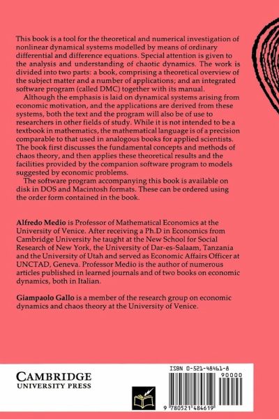 This book is a tool for the theoretical and numerical investigation of nonlinear dynamical systems modelled by means of ordinary differential and difference equations. Special attention is given to the analysis and understanding of chaotic dynamics. The work is divided into two parts: a book, comprising a theoretical overview of the subject matter and a number of applications; and an integrated software program (called DMC) together with its manual. Although the emphasis is laid on dynamical systems arising from economic motivation, and the applications are derived from these systems, both the text and the program will also be of use to researchers in other fields of study. While it is not intended to be a textbook in mathematics, the mathematical language is of a precision comparable to that used in analogous books for applied scientists. The book first discusses the fundamental concepts and methods of chaos theory, and then applies these theoretical results and the facilities provided by the companion software program to models suggested by economic problems. The software program accompanying this book is available on disk in DOS and Macintosh formats. These can ba ordered using the order form contained in the book.