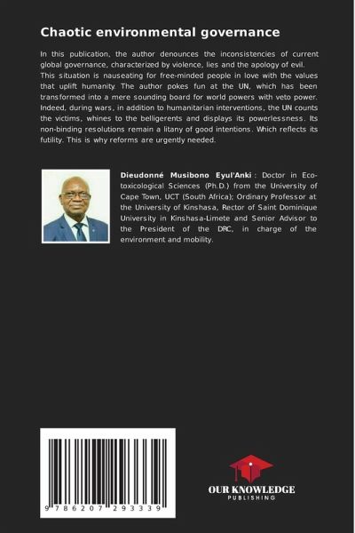 In this publication, the author denounces the inconsistencies of current global governance, characterized by violence, lies and the apology of evil.This situation is nauseating for free-minded people in love with the values that uplift humanity. The author pokes fun at the UN, which has been transformed into a mere sounding board for world powers with veto power. Indeed, during wars, in addition to humanitarian interventions, the UN counts the victims, whines to the belligerents and displays its powerlessness. Its non-binding resolutions remain a litany of good intentions. Which reflects its futility. This is why reforms are urgently needed.