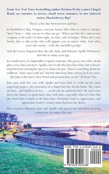From New York Times bestselling author Kristen Proby comes Chapel Bend, an enemies to lovers, small town romance in her beloved series, Huckleberry Bay! There's a fine line between love and hate. In Huckleberry Bay, Oregon, everyone knows that when it comes to Juniper "June" Snow - what you see is what you get. When you hire her construction company to do a job, it's done right, on time, and on budget. When she's your friend, she's a ride-or-die who will support you no matter what. And when you're her enemy...well, she can hold a grudge. And she's never forgotten how the tall, dark, and delicious Apollo Winchester hurt her so many years ago. In a small town, it's impossible to ignore someone who greets you with a death glare every time you meet. Apollo can't recall why June hates him, but it doesn't stop him from stirring her up every chance he gets. There's something about her stubborn, "don't mess with me" attitude that keeps him coming back for more. But June is his sister's best friend and permanently on the "off-limits" list. June puts aside her war with Apollo and hires him to work on her most important project, the renovation of a chapel into her dream home. She wants the best...and Apollo is the best . . . on the job site and in her bed. He won't turn down the chance to spend more time with June, especially when it's clear that she wants him as much as she hates him. Proximity leads to opportunity, and opportunity leads to steamy times between the sheets. But a mystery threatens June and Apollo will protect her and their growing connection, no matter the cost.