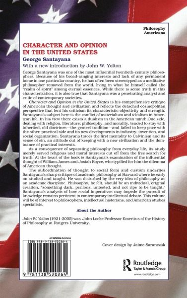 'Character and Opinion in the United States' is his comprehensive critique of American thought and civilization and reflects the detached cosmopolitan perspective that lent his criticism its characteristic objectivity and strength. Santayana's subject here is the conflict of materialism and idealism in American life.