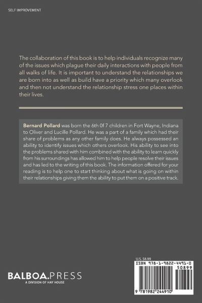 The collaboration of this book is to help individuals recognize many of the issues which plague their daily interactions with people from all walks of life. It is important to understand the relationships we are born into as well as build have a priority which many overlook and then not understand the relationship stress one places within their lives.