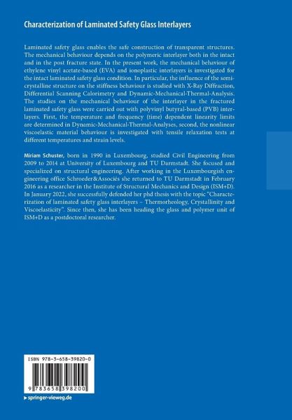 Laminated safety glass enables the safe construction of transparent structures. The mechanical behaviour depends on the polymeric interlayer both in the intact and in the post fracture state. In the present work, the mechanical behaviour of ethylene vinyl acetate-based (EVA) and ionoplastic interlayers is investigated for the intact laminated safety glass condition. In particular, the influence of the semi-crystalline structure on the stiffness behaviour is studied with X-Ray Diffraction, Differential Scanning Calorimetry and Dynamic-Mechanical-Thermal-Analysis. The studies on the mechanical behaviour of the interlayer in the fractured laminated safety glass were carried out with polyvinyl butyral-based (PVB) interlayers. First, the temperature and frequency (time) dependent linearity limits are determined in Dynamic-Mechanical-Thermal-Analyses, second, the nonlinear viscoelastic material behaviour is investigated with tensile relaxation tests at different temperatures and strainlevels.
