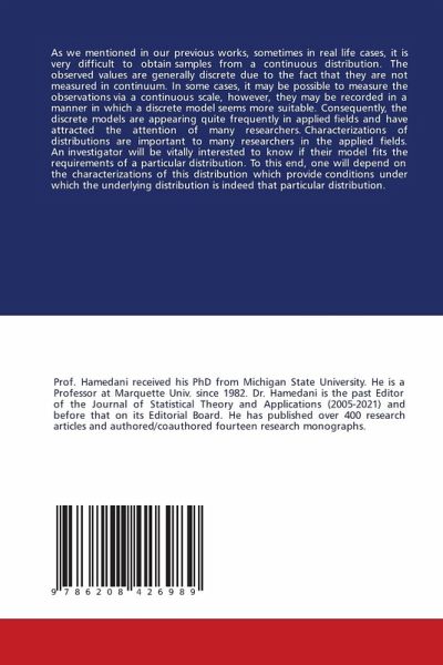 As we mentioned in our previous works, sometimes in real life cases, it is very difficult to obtain samples from a continuous distribution. The observed values are generally discrete due to the fact that they are not measured in continuum. In some cases, it may be possible to measure the observations via a continuous scale, however, they may be recorded in a manner in which a discrete model seems more suitable. Consequently, the discrete models are appearing quite frequently in applied fields and have attracted the attention of many researchers. Characterizations of distributions are important to many researchers in the applied fields. An investigator will be vitally interested to know if their model fits the requirements of a particular distribution. To this end, one will depend on the characterizations of this distribution which provide conditions under which the underlying distribution is indeed that particular distribution.